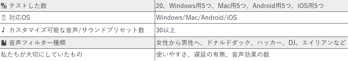 - オリジナルボイスを変更するための多数のボイスオプション(100以上)が利用可能