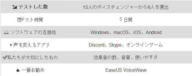 Windows であらゆる機能を備えたボイスチェンジャーとして最もおすすめなのは、EaseUS VoiceWaveです。200 種類以上のオンライン ゲームと 50 種類以上のメッセージング アプリに対応する 100 種類以上のボイスを提供しています。このソフトウェアは、コンピューターにすばやく簡単にインストールでき、すぐに使用できます。ユーザー フレンドリーなインターフェイスにより、誰でも簡単に使用できます。